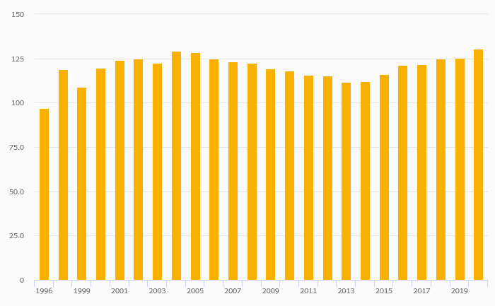 Female to Male Tertiary Enrollment Rate rose 4.14% to 131% in Armenia in 2020