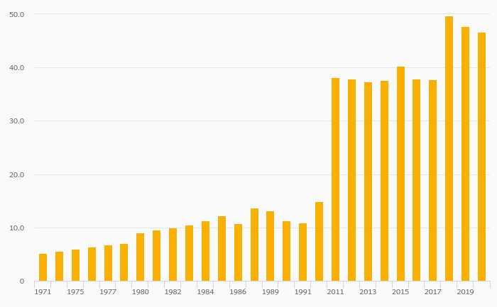 Girls to Boys In Primary and Secondary Education rose 0% to 103% in Iran in 2020