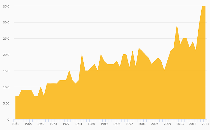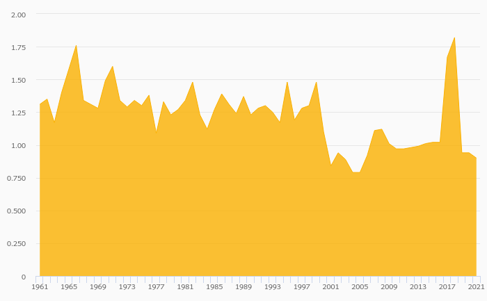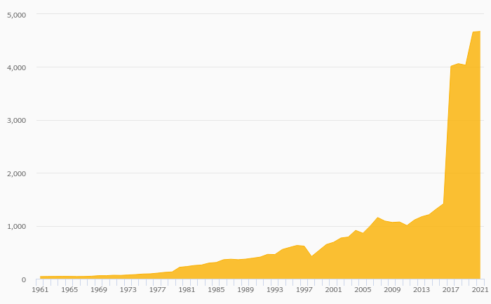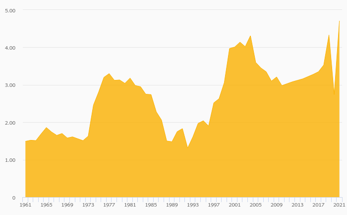 Alcoholic Beverage Consumption Per Capita (Distilled) rose 71.9% to 4.71 litres in El Salvador in 2021