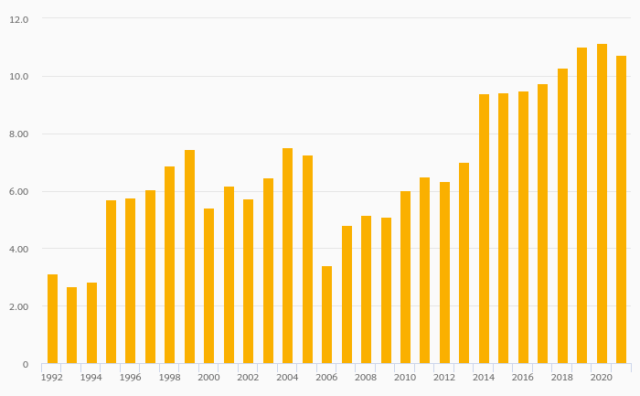 Egg Consumption Per Capita fell 3.68% to 10.7 kg in Georgia in 2021