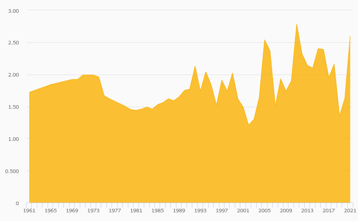 Egg Consumption Per Capita rose 59.5% to 2.60 kg in Liberia in 2021
