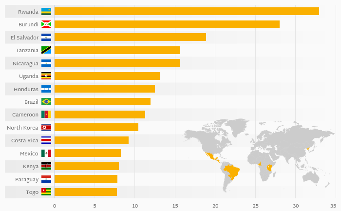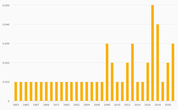 Cocoa Bean Consumption Per Capita rose 50.0% to 0.030 kg in Tanzania in 2021