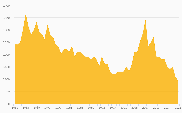 Alcoholic Beverage Consumption Per Capita (Distilled) fell 18.2% to 0.090 litres in Tanzania in 2021