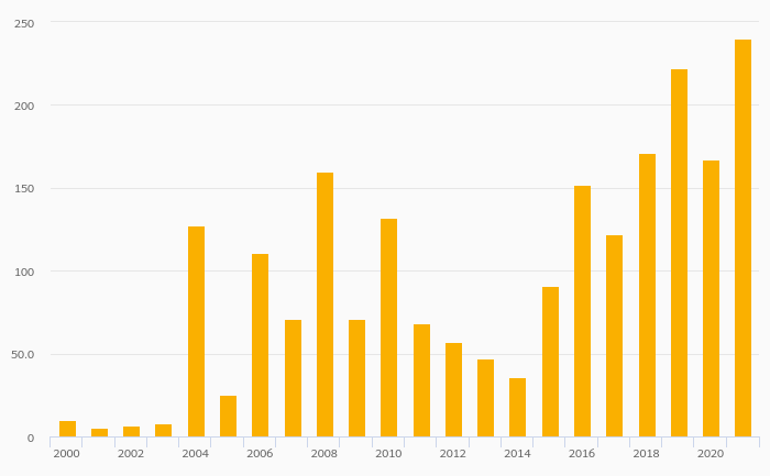Banana Consumption (Total) rose 43.7% to 240 kt in Belgium in 2021