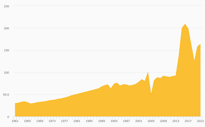 Banana Consumption (Total) rose 3.80% to 164 kt in Zimbabwe in 2021