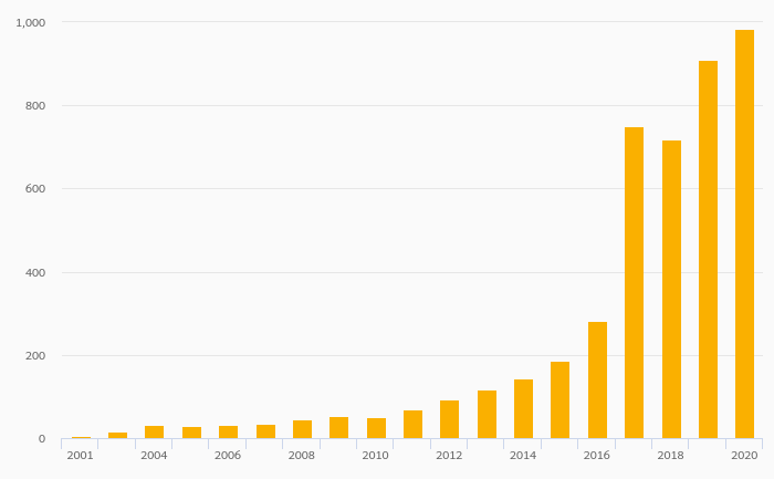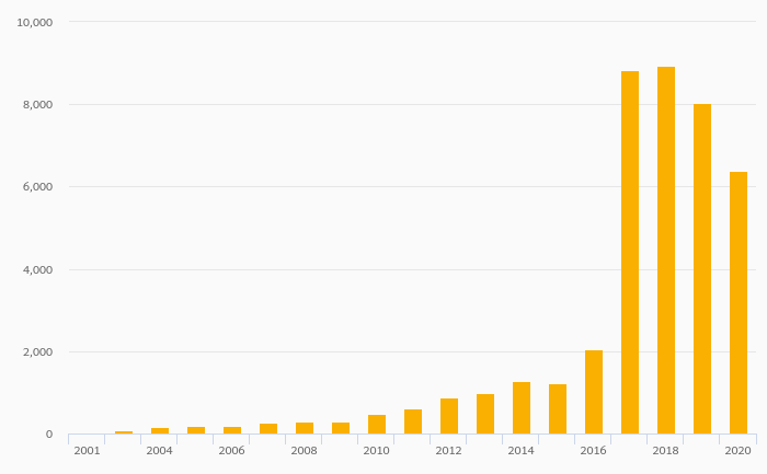 Secure Internet Servers rose 9.53% to 2,000 in Liechtenstein in 2020