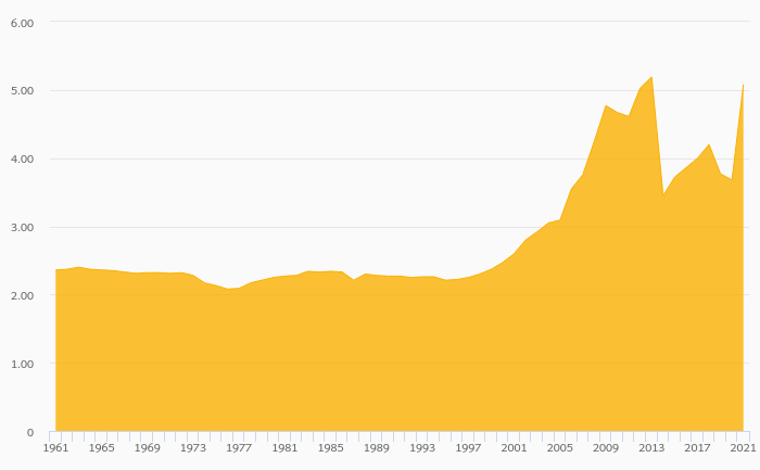 Onion Consumption Per Capita rose 38.0% to 5.08 kg in Vietnam in 2021