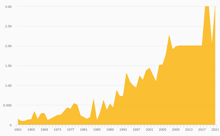 Egg Consumption Per Capita rose 1.04% to 1.95 kg in Laos in 2021