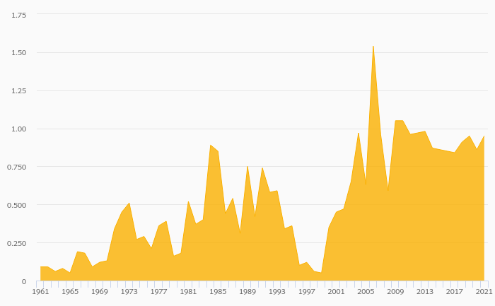 Cocoa Bean Consumption Per Capita rose 10.5% to 0.950 kg in Costa Rica in 2021