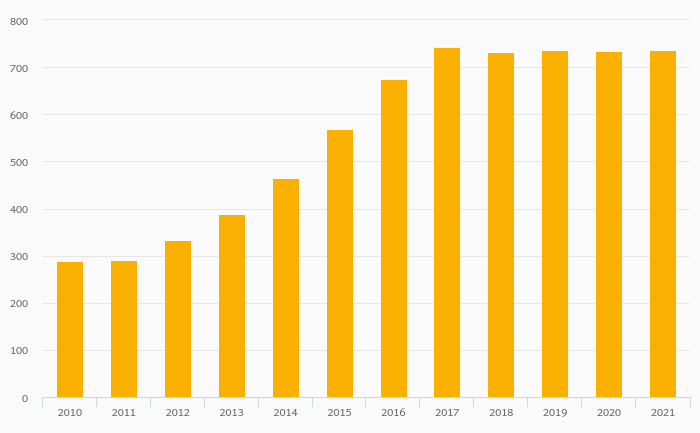 Egg Consumption (Total) rose 1.68% to 725 kt in Spain in 2021