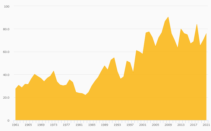 Banana Consumption (Total) rose 8.57% to 76.0 kt in Denmark in 2021