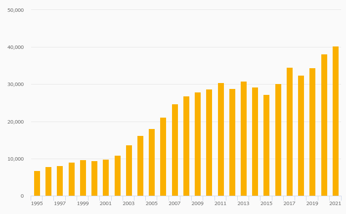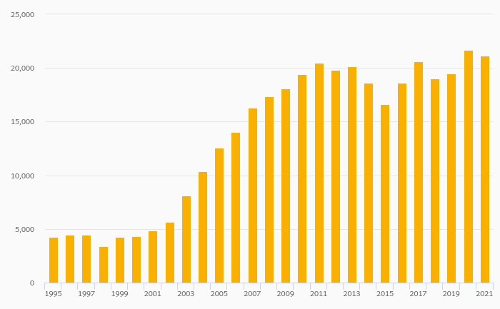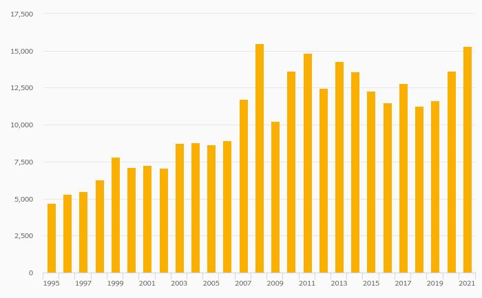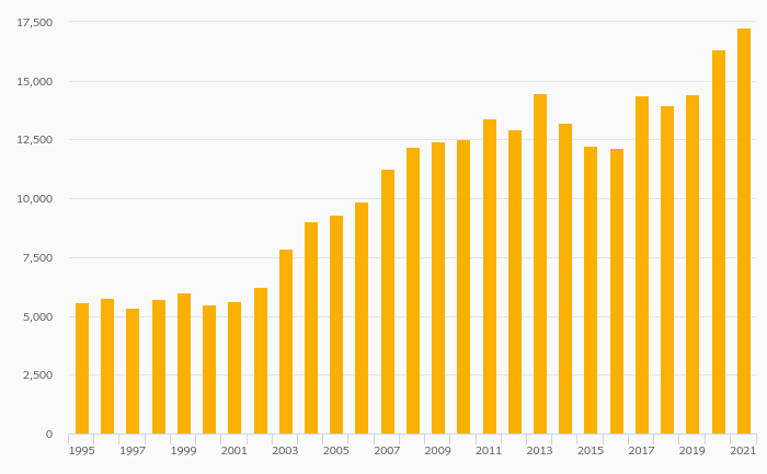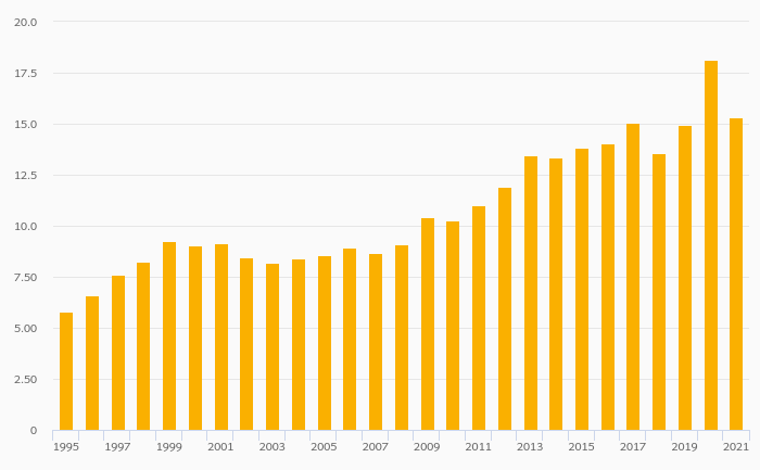 Households' Assets In Life Insurance Reserves Per Capita (USD) rose 12.3% to USD 15,323 in Sweden in 2021