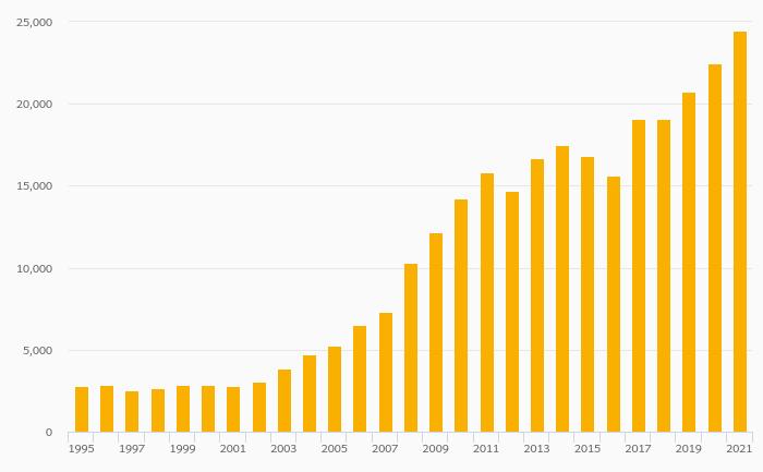 Households' Assets In Life Insurance Reserves Per Capita (USD) rose 8.99% to USD 24,495 in Luxembourg in 2021