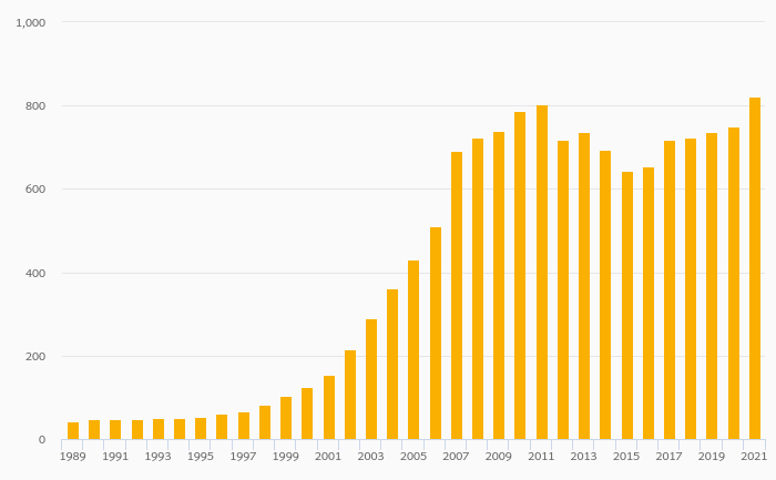 Households' Assets In Life Insurance Reserves Per Capita (USD) rose 9.55% to USD 821 in Hungary in 2021