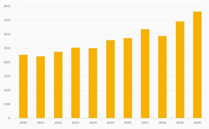 Households' Assets In Life Insurance Reserves (As % of GDP) rose 10.2% to 38.1% in Israel in 2020
