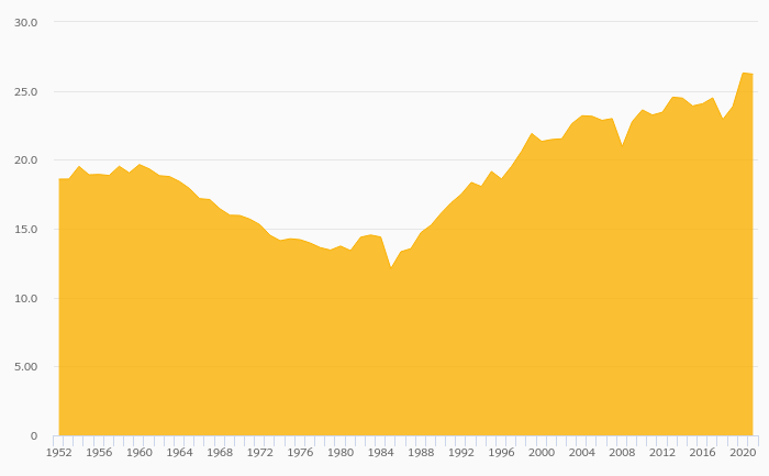 Households' Assets In Life Insurance Reserves (As % of GDP) fell 0.317% to 26.2% in the USA in 2021