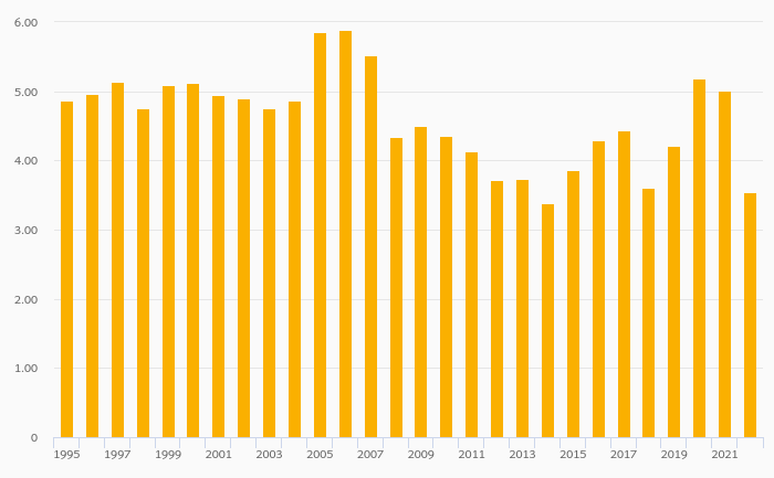 Households' Assets In Life Insurance Reserves (As % of GDP) fell 29.3% to 3.54% in Norway in 2022