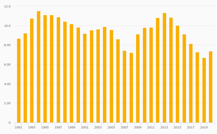 Unemployment Rate rose 10.1% to 7.37% in the European Union in 2020