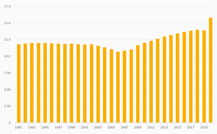 Unemployment Rate rose 13.7% to 15.8% in Guyana in 2020