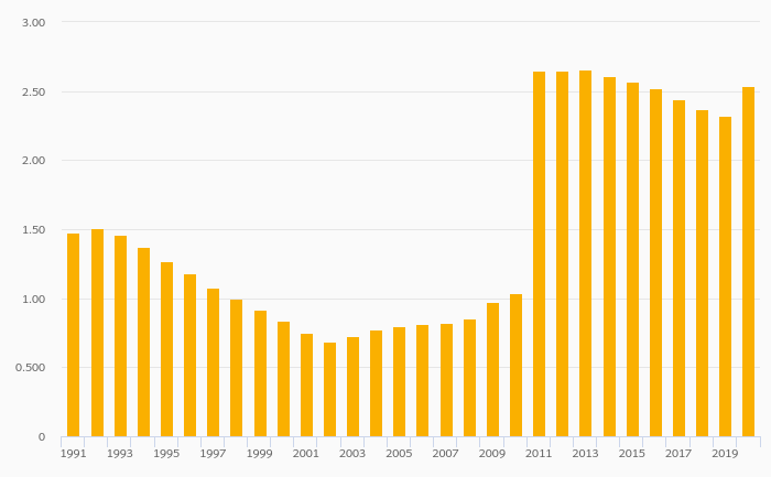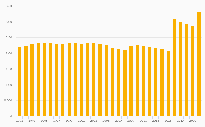 Unemployment Rate rose 18.3% to 2.26% in Chad in 2020