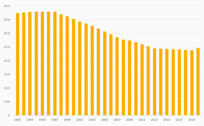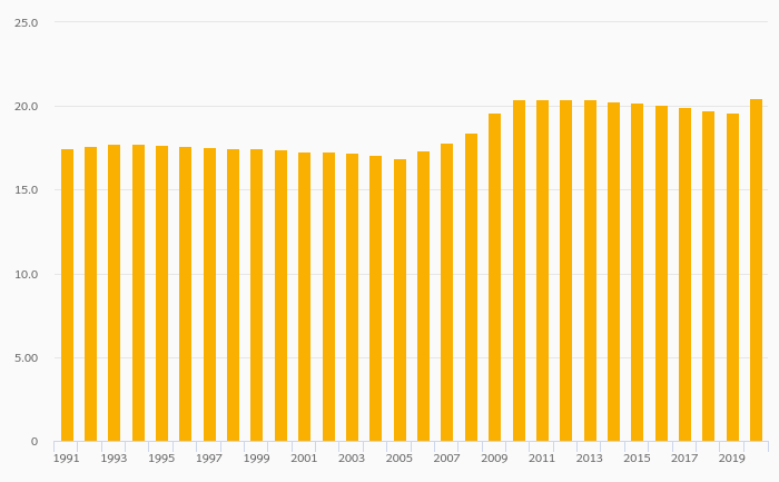 Unemployment Rate rose 4.23% to 20.5% in Gabon in 2020