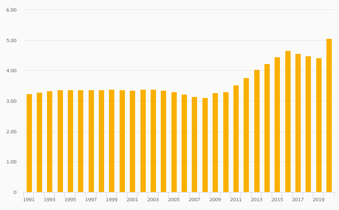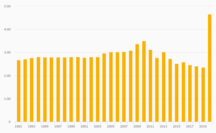 Unemployment Rate rose 97.0% to 4.65% in Guatemala in 2020