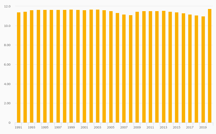 Unemployment Rate rose 11.1% to 7.70% in Angola in 2020