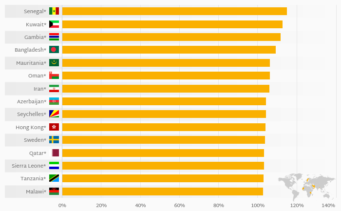 Gross School Enrollment, Female (Primary Education) rose 2.85% to 110% in Algeria in 2020