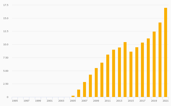 Households' Pension Fund Assets (USD) rose 19.5% to USD 17.0 bil in Slovakia in 2021