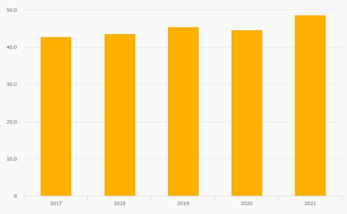 Households' Pension Fund Assets (USD) rose 8.87% to USD 48.6 bil in Iceland in 2021