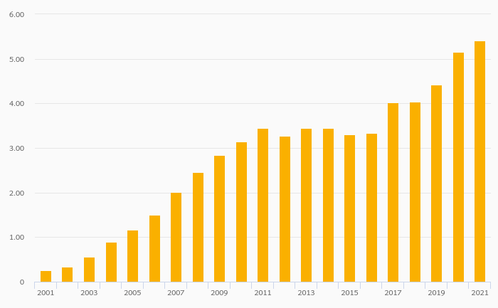 Households' Pension Fund Assets (USD) rose 4.96% to USD 5.42 bil in Slovenia in 2021