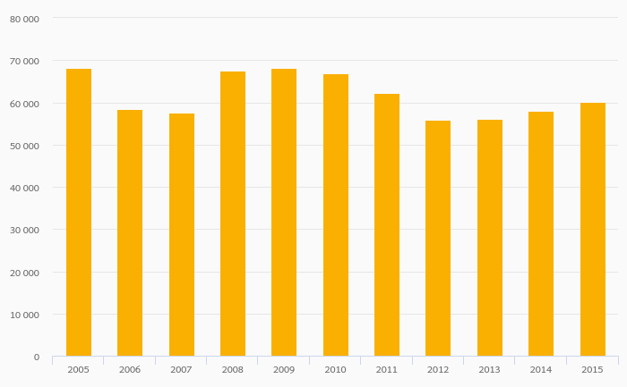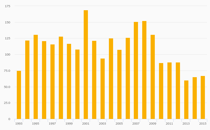 Gold (Mine) Production rose 3.64% to 60,046 kg in Papua New Guinea in 2015