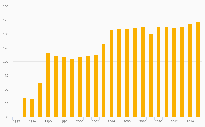 Aluminium (Primary) Production rose 2.12% to 171 kt in Slovakia in 2015