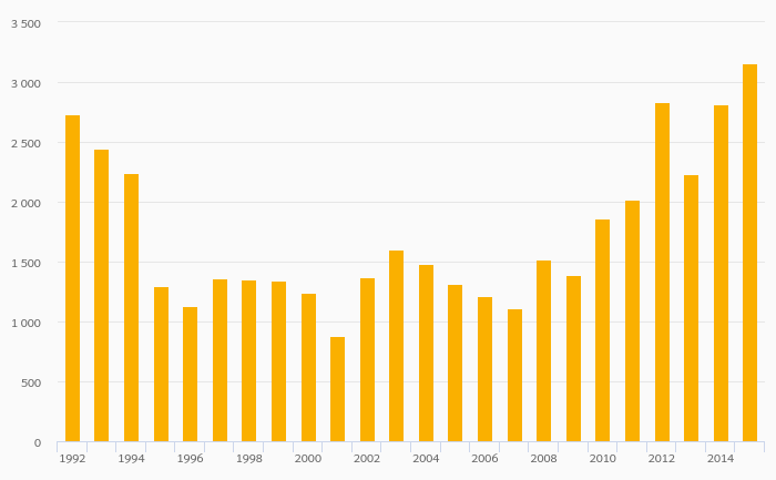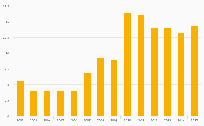 Silver (Mine) Production rose 7.89% to 14.3 kt in Armenia in 2015