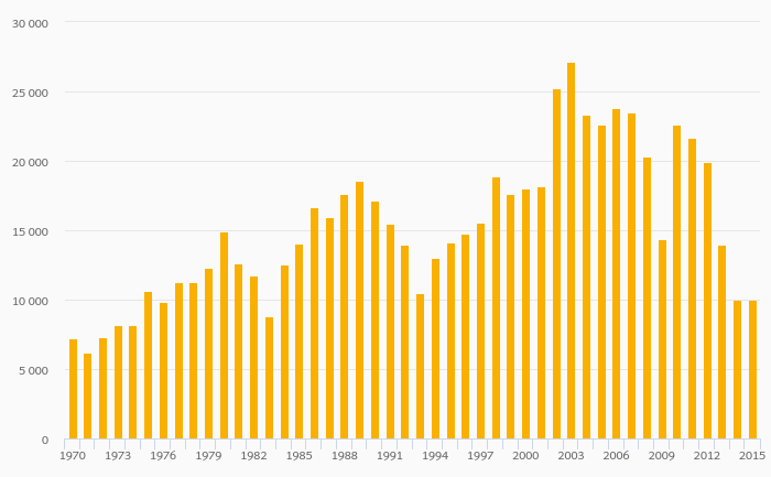 Vanadium (Mine) Production rose 0% to 10,000 tonnes in South Africa in 2015