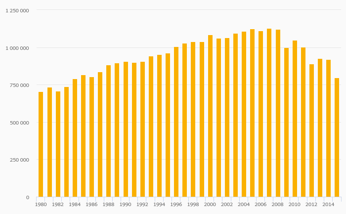 Total Coal Consumption fell 13.0% to 798,155 kt in the USA in 2015