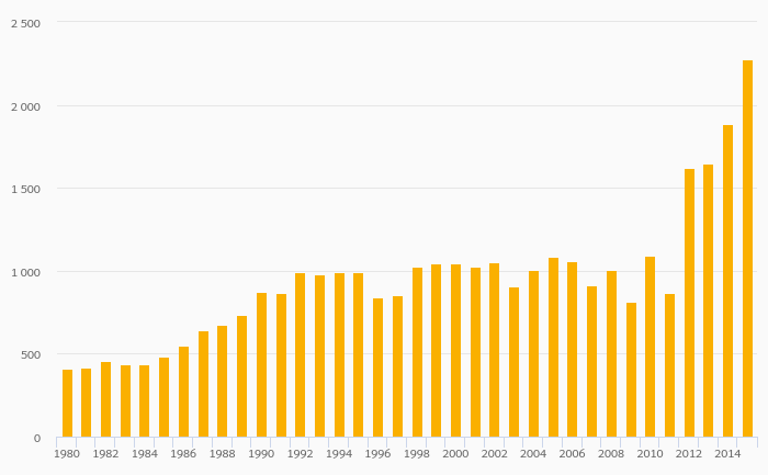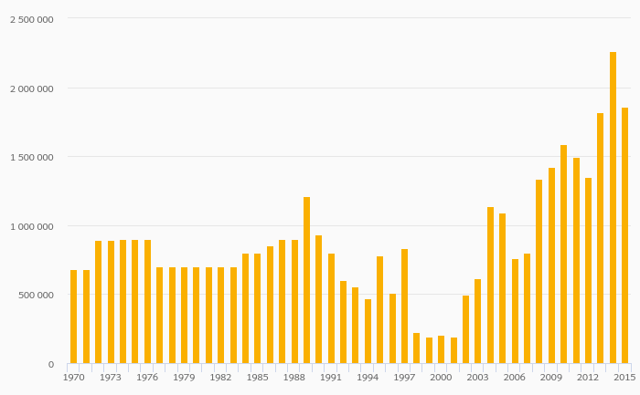 Mercury Production fell 17.6% to 1,861,000 kg in China in 2015