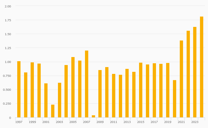 Bank Pre-Tax Return on Assets (Pre-Tax ROA) rose 11.3% to 1.81% in Israel in 2024