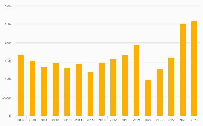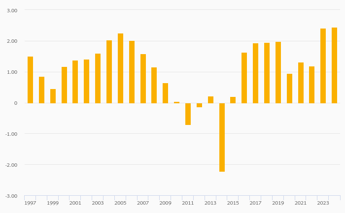 Bank Pre-Tax Return on Assets (Pre-Tax ROA) rose 1.32% to 2.44% in Hungary in 2024