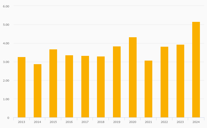 Bank Pre-Tax Return on Assets (Pre-Tax ROA) rose 31.0% to 5.16% in Guinea in 2024
