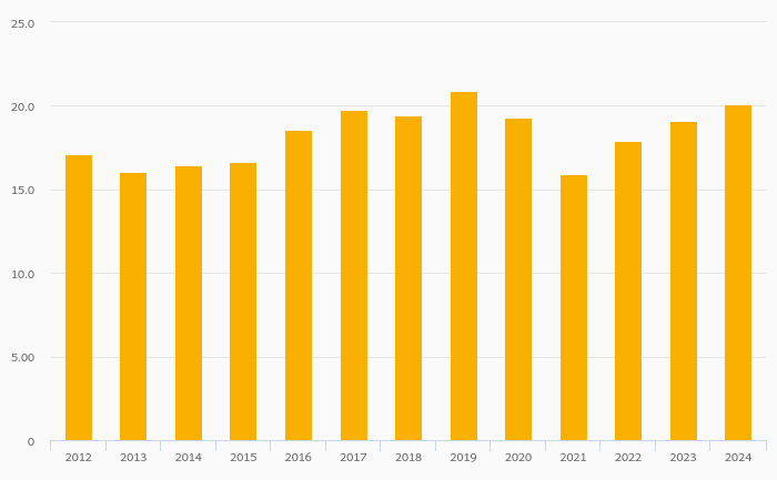 Bank Pre-Tax Return on Equity (Pre-Tax ROE) fell 3.42% to 20.0% in Mauritius in 2024