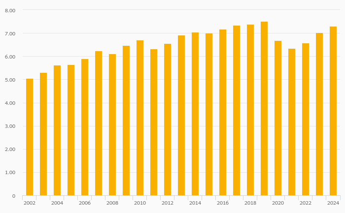 Bank Equity (As % of Bank Assets) rose 3.96% to 7.31% in Israel in 2024
