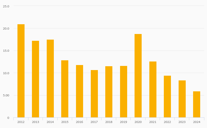 Non-Performing Loans (As % of Total Loans) fell 29.3% to 5.89% in Maldives in 2024