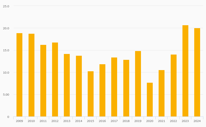 Bank Pre-Tax Return on Equity (Pre-Tax ROE) rose 1.00% to 25.9% in Russia in 2023
