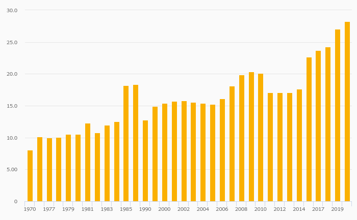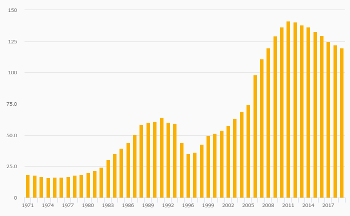 Gross School Enrollment, Female (Tertiary Education) rose 0.499% to 66.4% in Algeria in 2020