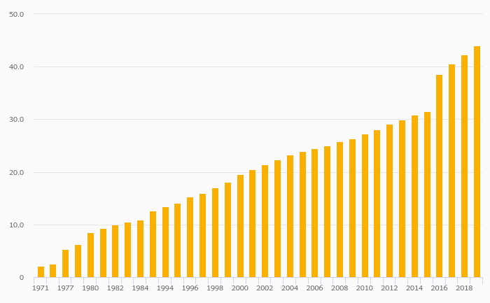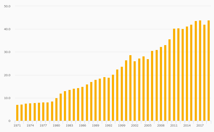 Gross School Enrollment, Female (Tertiary Education) rose 3.99% to 44.0% in Mexico in 2019