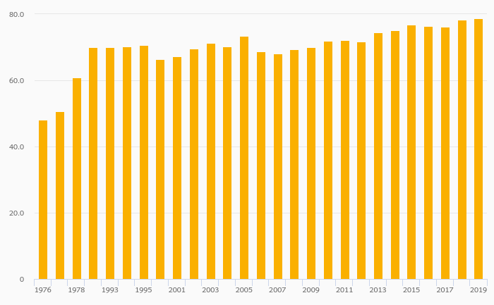 Gross School Enrollment, Female (Tertiary Education) rose 0.513% to 79.5% in Croatia in 2019