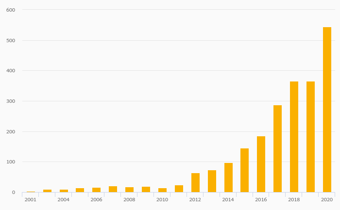 Secure Internet Servers rose 71.4% to 384 in Laos in 2020