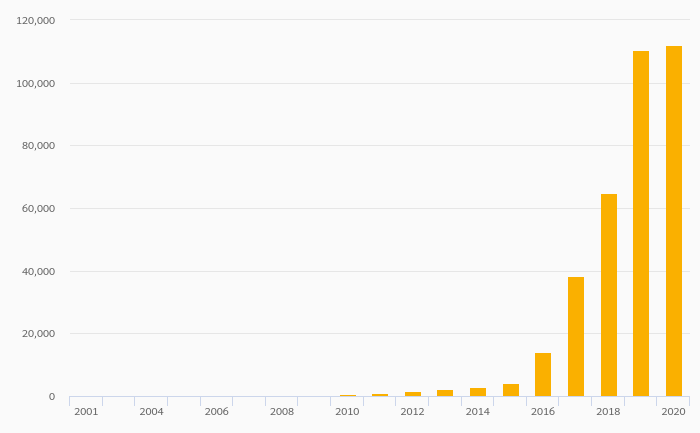 Secure Internet Servers rose 1.45% to 112,151 in Estonia in 2020