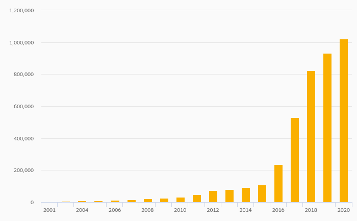 Secure Internet Servers rose 9.78% to 1,022,449 in Australia in 2020